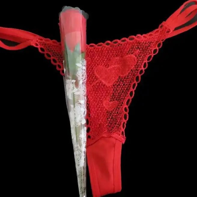 Perizoma Rosso in Pizzo con Bocciolo di Rosa Taglia Unica